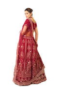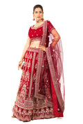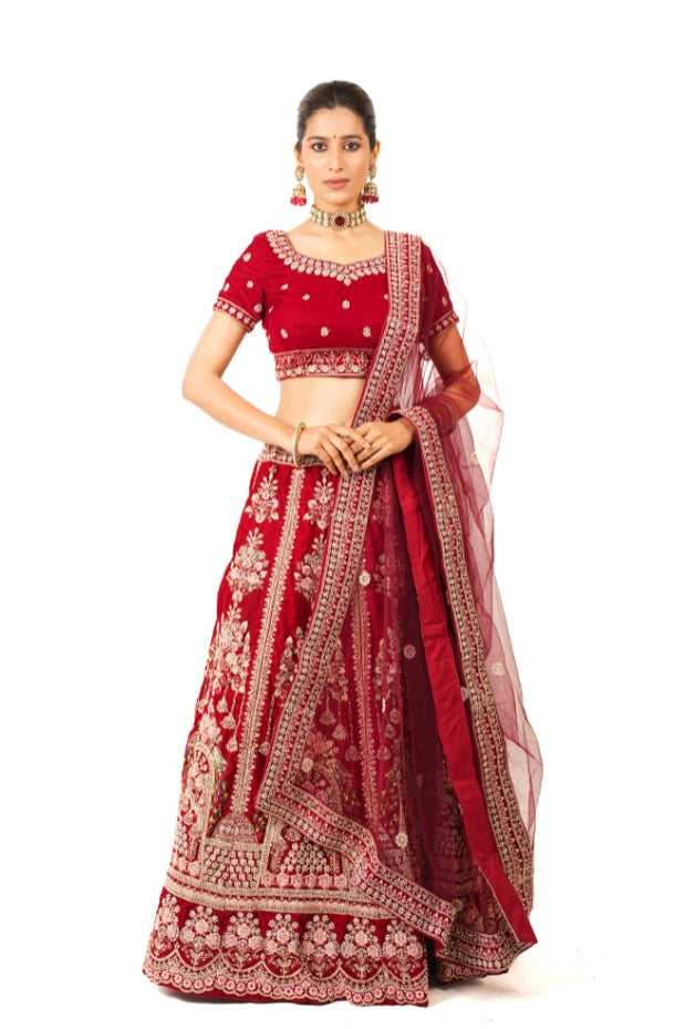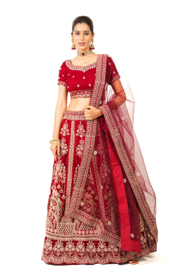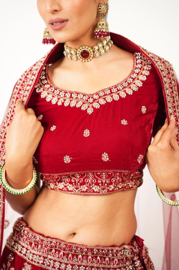 Classic Red Velvet Hand Embroidered Bridal Lehenga Set