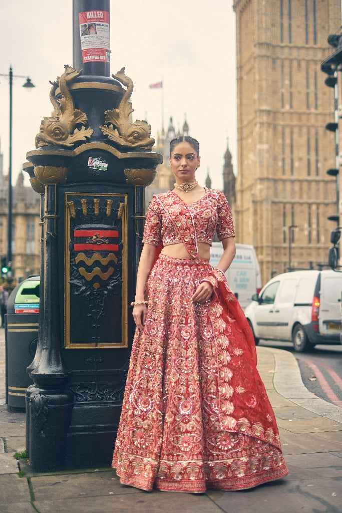 - Impeccably blending tradition and contemporary design, our Red Hand-Embroidered Bridal Lehenga ensures a uniquely stunning bridal look.